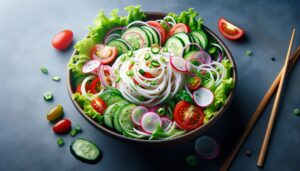 夏場や給食の残り物活用にぴったりの一品です。茹でた稲庭うどんを冷水でしっかり締め、水気を切ったら大きめのボウルに移します。そこに以下の野菜を加えましょう: